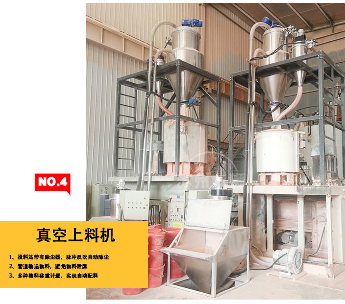 我公司設(shè)計(jì)了電腦自動(dòng)控制稱(chēng)重、配料、輸送的系統(tǒng)解決方案。本方案的基本流程為:自動(dòng) 稱(chēng)重,稱(chēng)重完畢的物料投入混合機(jī)組,輔以氣力管道輸送至擠出機(jī)。與傳統(tǒng)的方法相比這種方案的優(yōu)點(diǎn)是: