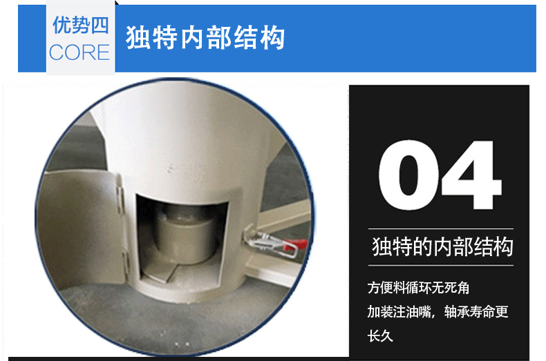 特點(diǎn):采用螺旋攪拌工作之原理,將投入投料斗中的物料通過(guò)螺旋主軸輸送到桶體上端,再以傘狀形落下且一直持續(xù)循環(huán)攪拌,從而達(dá)到混合均勻的目的