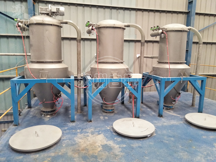真空上料機是利用真空泵產生負壓氣流,真空產生的負壓將物料從進料口被吸入。然后在在分離容器的過濾倉內,將空氣與物料進行分離。物料因重力作用而自動落下,物料被收集在料倉中。我們的旋風分離器阻止細小粉末進入過濾器,以提高過濾器的效率。待料倉充滿物料時,真空泵自動關閉,輸送設備內的壓力達到平衡。放料閥開啟,物料通過出料口流出,并直接落入儲料容器。出料時,過濾芯被反吹氣囊自動清潔。如物料較為粘稠,我們可以安裝特制的振動器輔助下料;下料結束出料艙自動關閉,整個輸送流程再次啟動。
